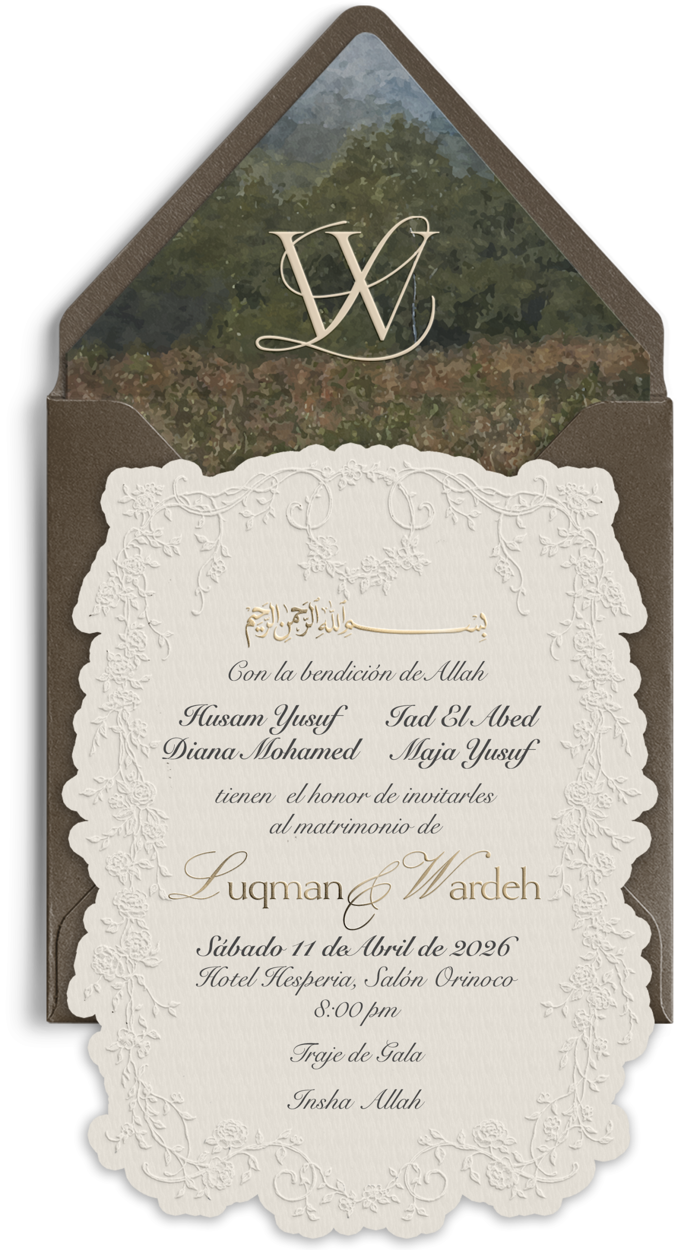 Luqman & Wardeh - Invitación de Boda Ver invitación 00Días 00Horas 00Min. 00Seg. × R.S.V.P. Por favor, confirma tu asistencia ¿Asistirás? Sí, allí estaré Lo siento, no podré ir Confirmar Ahora ¡MUCHAS GRACIAS! Tu respuesta ha sido enviada con éxito. Cerrar